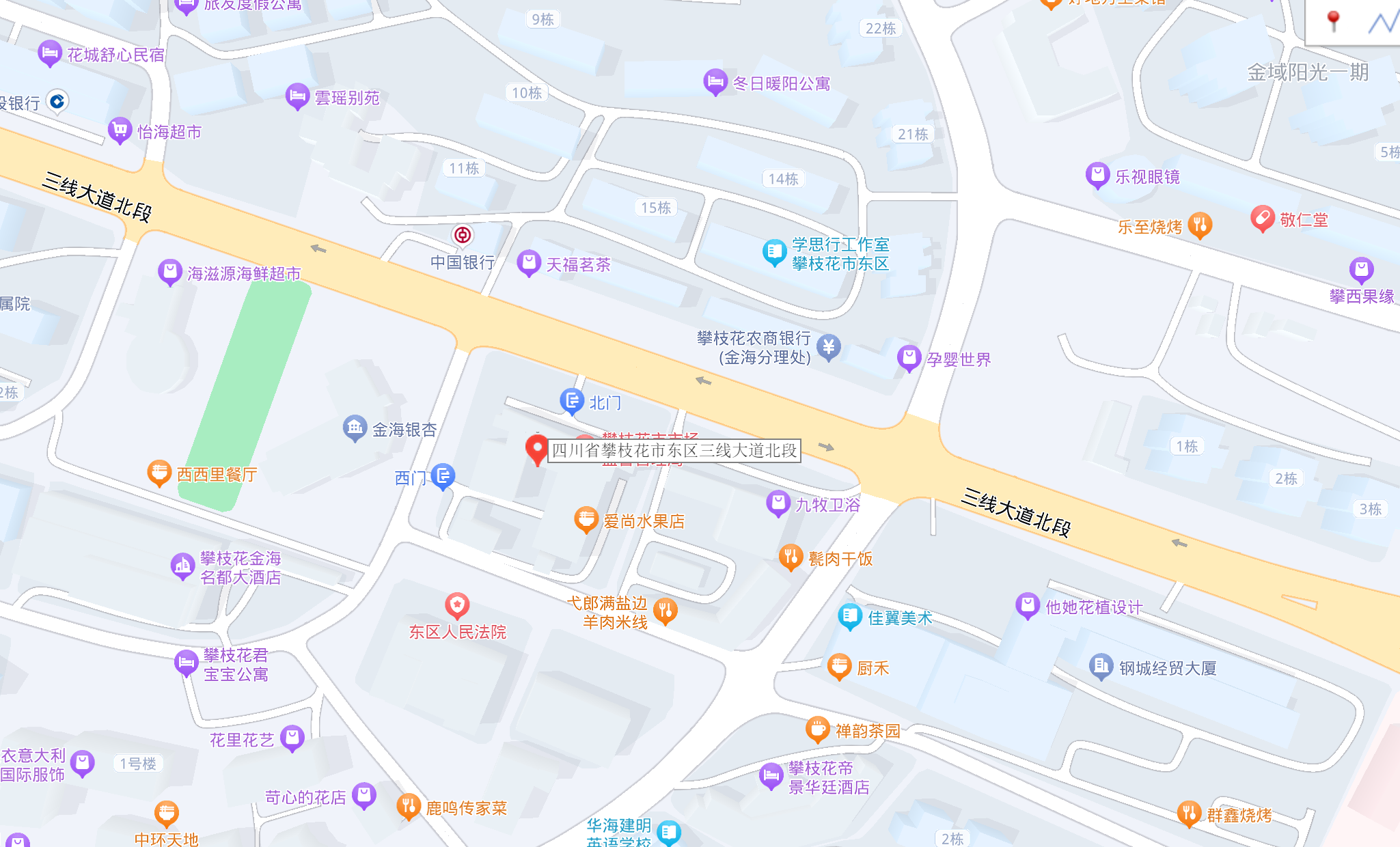 圖中終點(diǎn)標(biāo)記為攀枝花市人民政府辦公室所在地