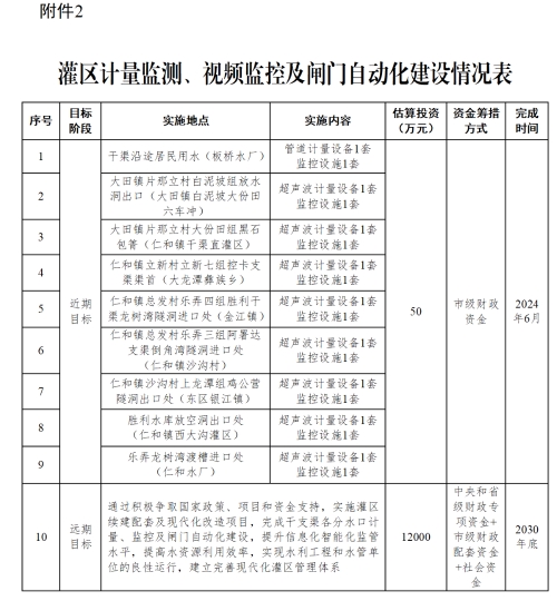 1.近期任務。2024年6月完成干渠9處用水單元計量監測設施安裝,為推進用水權初始分配和交易提供基礎支撐(見附件2)。