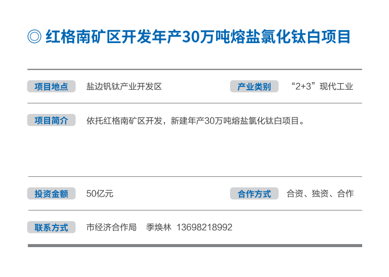 紅格南礦區開發年產30萬噸熔鹽氯化鈦白項目