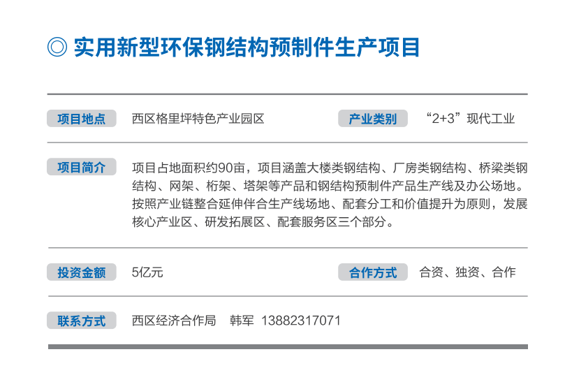 實用新型環保鋼結構預制件生產項目