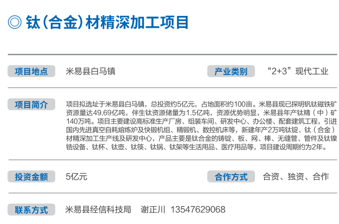 鈦(合金)材精深加工項目