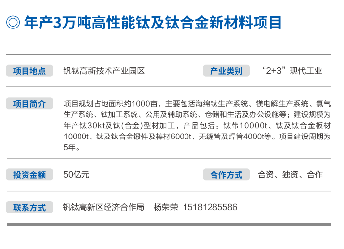 年產3萬噸高性能鈦及鈦合金新材料項目
