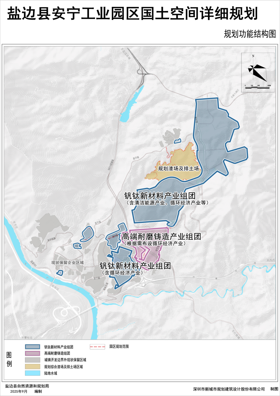 釩鈦新材料產業組團:位于園區北部、中部(部分)、南部,重點發展釩產業鏈和鈦產業鏈,配套發展清潔能源產業及循環經濟產業。