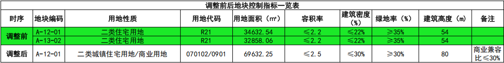 本次論證,將A-12-01與A-13-02地塊之間的規劃支路取消,并以論證范圍為邊線基準整合為一個新地塊A-12-01,用地面積為69632.25㎡。