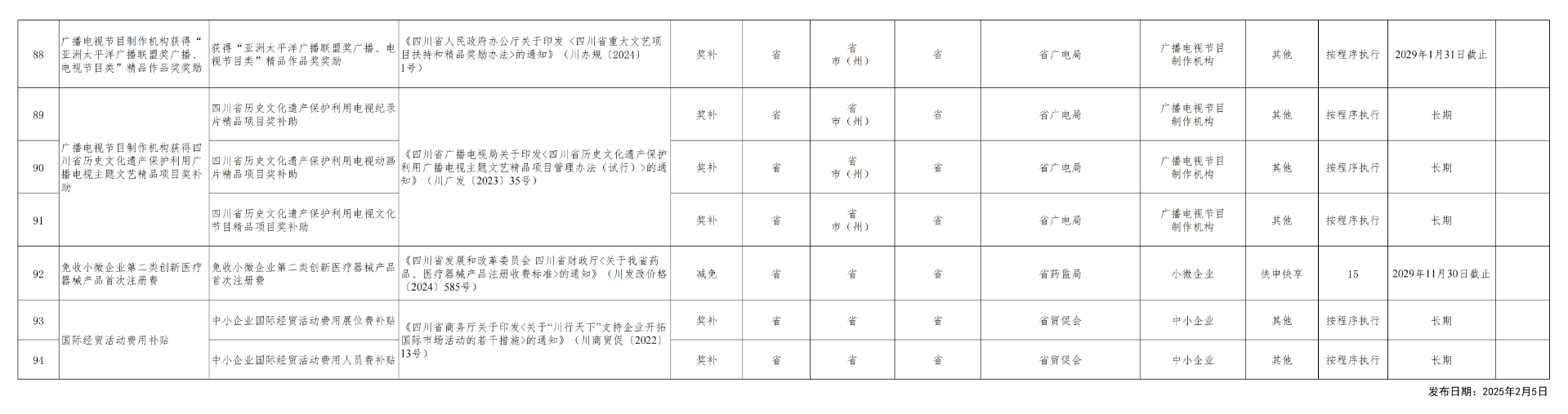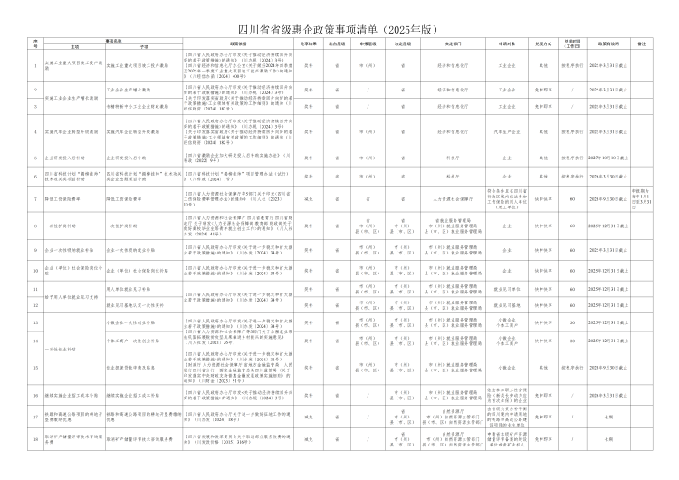 四川省省級惠企政策事項清單(2025年版)