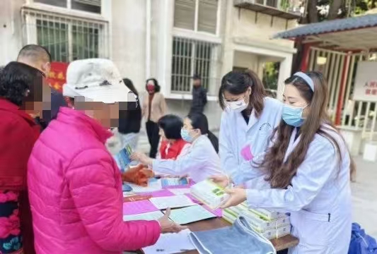 活動期間,醫務人員深入大河南路社區、仁和廣場等多個居民聚集區,結合“天府健康壩壩講”健康知識傳播志愿服務,為轄區群眾開展免費義診和健康知識科普。活動現場,醫務人員為來往群眾免費測量血壓血糖,并通過面對面問診、健康評估、發放健康宣傳資料等方式,就慢性病管理、心理健康等內容,為群眾解答診療、用藥、飲食等方面的疑慮,同時針對個體情況給予個性化健康指導。