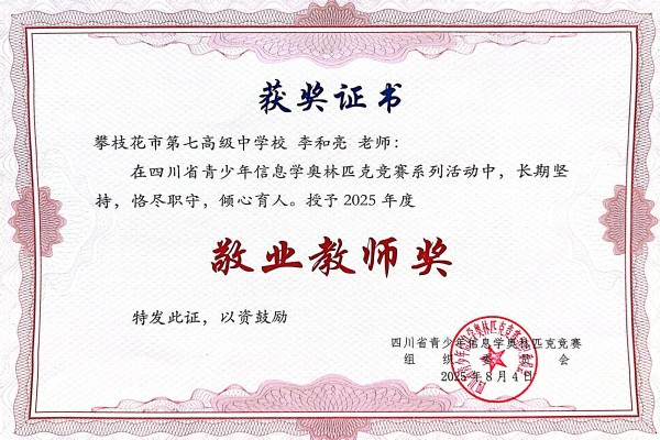 2025年8月,四川省信息學奧林匹克競賽組委會發布2025年四川省青少年信息學奧林匹克競賽活動先進集體和個人評獎結果。