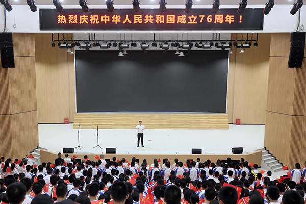 在9月30日的升旗儀式上,同學代表作主題演講,呼吁全體同學,扛起時代的責任,繼續書寫新的輝煌。