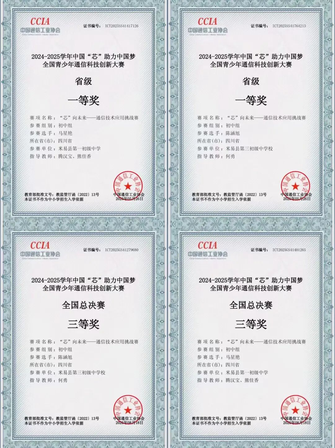米易縣依托中國兒童少年基金會和騰訊基金會提供的線上課程與線下研學資源,已幫助2000余名學生接觸到前沿科技。與此同時,持續強化校園硬件保障與課程體系建設,形成雙重支撐,全縣各中學、鄉鎮中心校及部分村小均配備信息科技教室,縣第一初級中學校設有“小平科技創新實驗室”,縣第二小學校建有人工智能實驗室,聞道中學配備創客空間。2025年,米易縣首次組織20名“春蕾科技女孩”參加信息科技類競賽集訓。在中國“芯”助力中國夢全國青少年通訊科技創新四川賽區大賽中,馬星艷和陳涵旭斬獲省級一等獎,另有8人獲省級二等獎、10人獲省級三等獎。8月,捷報頻傳,在全國總決賽的賽場上,馬星艷和陳涵旭又獲全國三等獎。