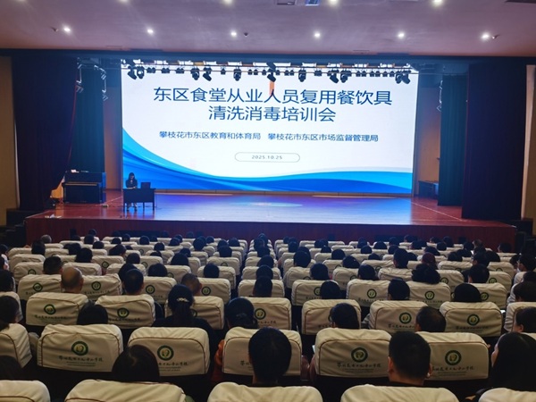10月25日上午,攀枝花市東區(qū)教育和體育局、攀枝花市東區(qū)市場(chǎng)監(jiān)督管理局在攀枝花市十九中小龍?bào)鋵W(xué)校聯(lián)合組織召開(kāi)學(xué)校食堂從業(yè)人員復(fù)用餐飲具清洗消毒專項(xiàng)培訓(xùn)會(huì)。東區(qū)轄區(qū)內(nèi)各類學(xué)校(園)食品安全管理人員、食堂管理員及從業(yè)人員等共計(jì)525人參加培訓(xùn)。