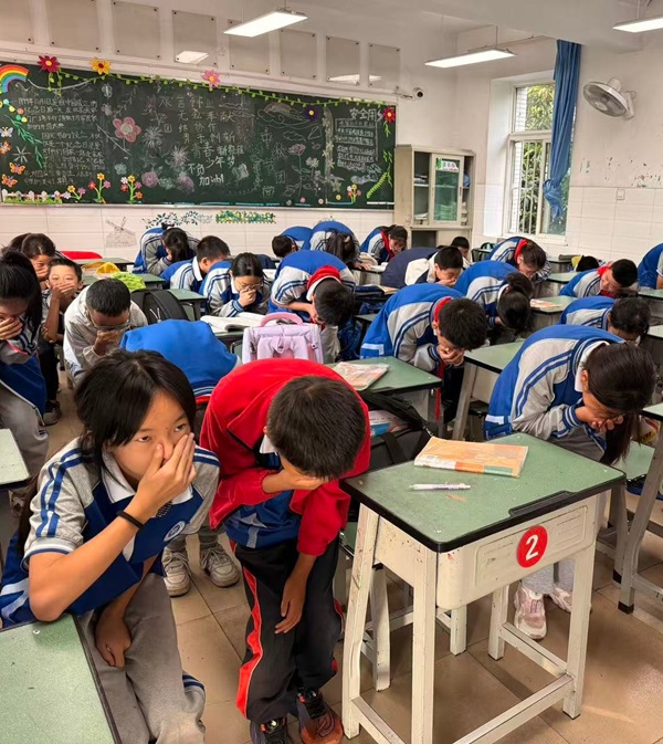攀枝花市十九中小龍箐學校組織全體師生開展了防震避險應急疏散演練。地震警報響起,同學們迅速以“伏地、遮擋、手抓牢”的標準姿勢藏身課桌下。地震警報結束,學生雙手護頭,沿指定路線迅速撤離,全員安全抵達操場。此次防震避險應急疏散演練,不僅讓師生在實戰場景中夯實了應急避險技能,更進一步完善了學校應急管理機制。