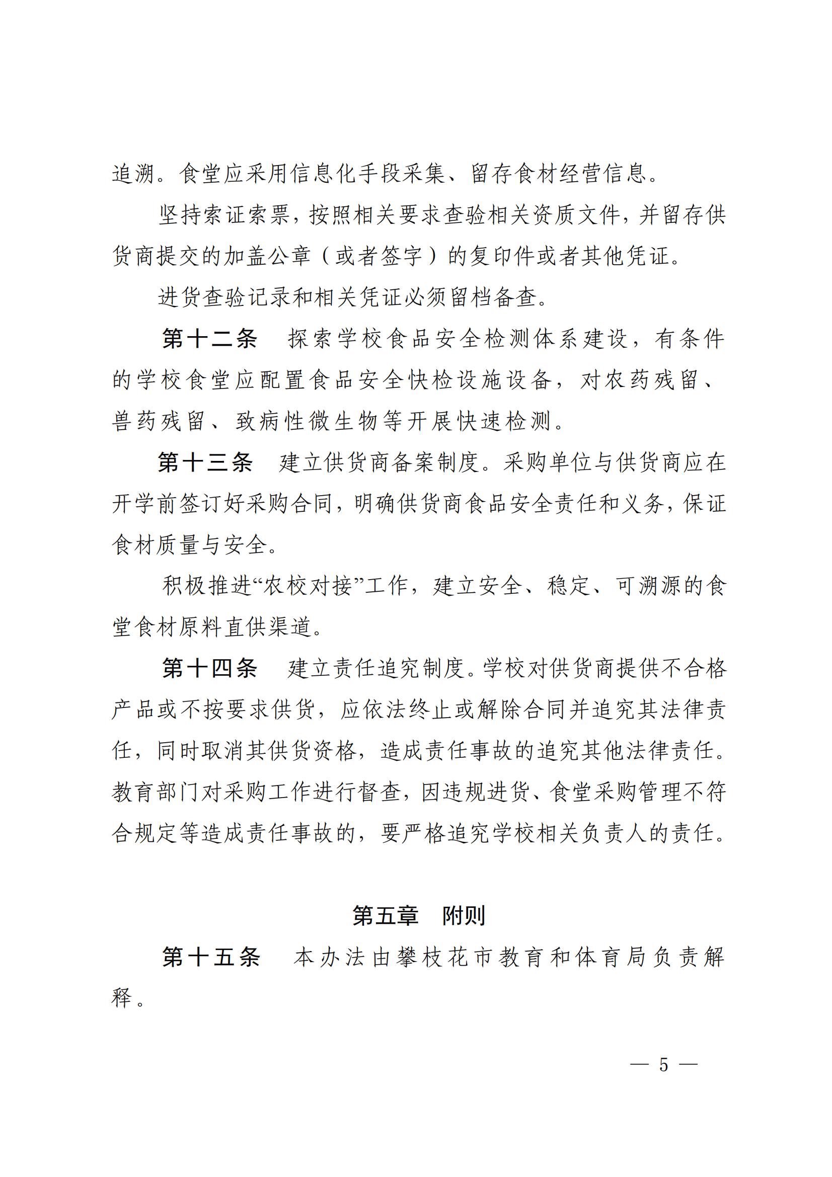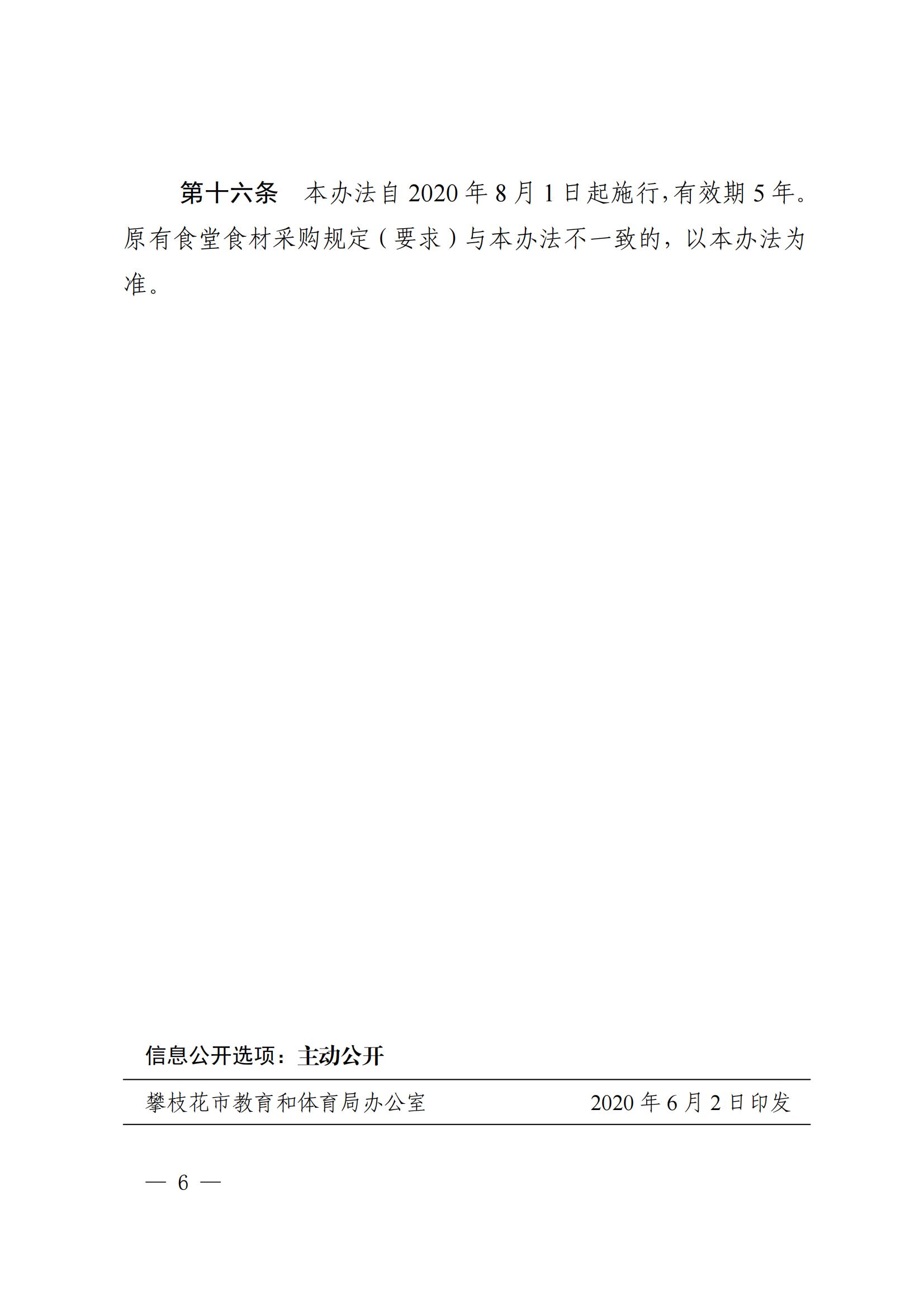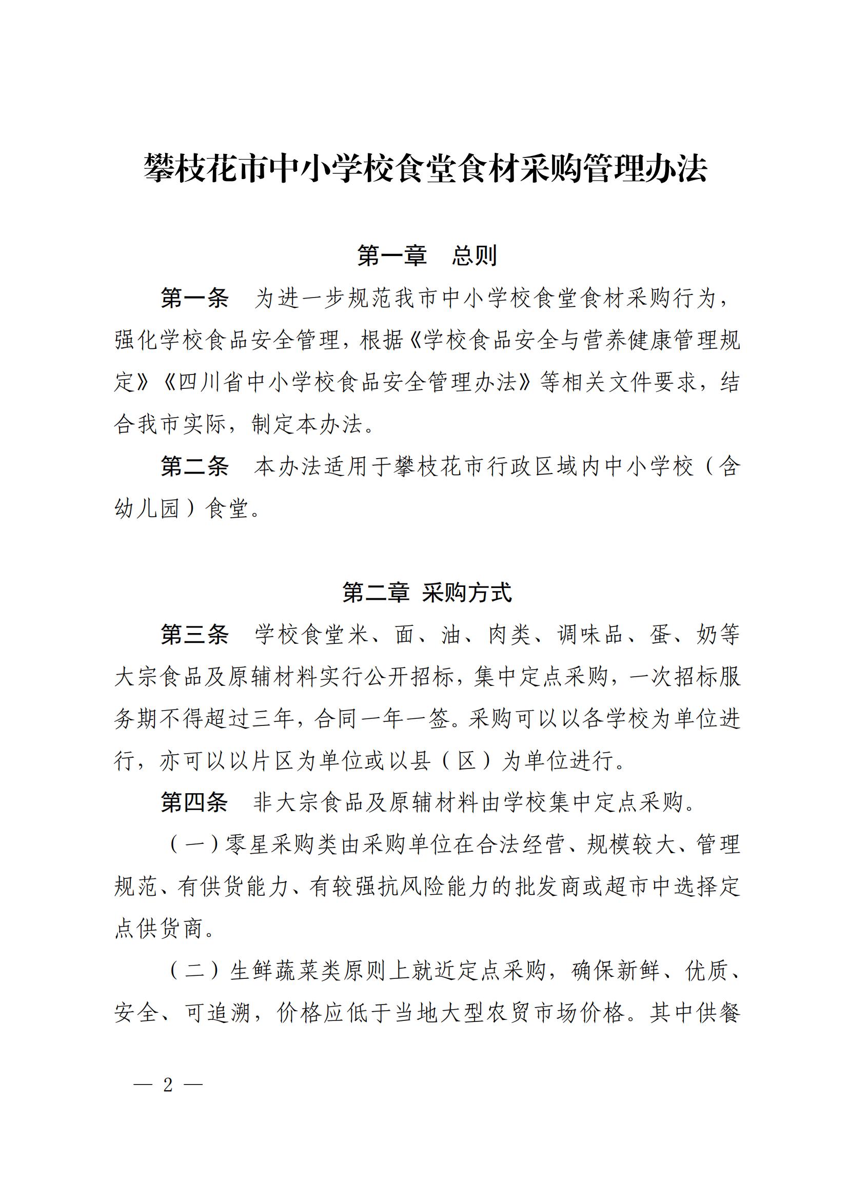 攀枝花市教育和體育局關于印發《攀枝花市中小學校食堂食材采購管理辦法》的通知