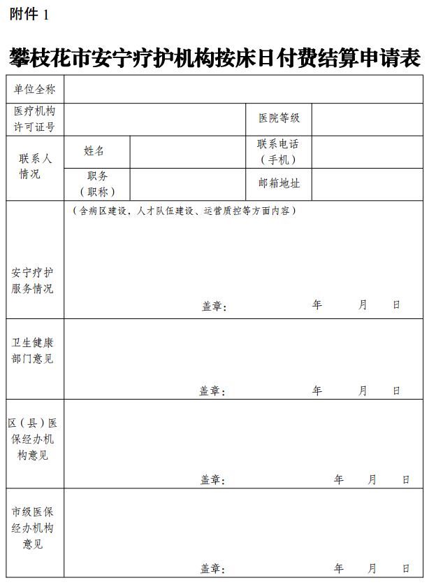附件:1.攀枝花市安寧療護機構按床日付費結算申請表
