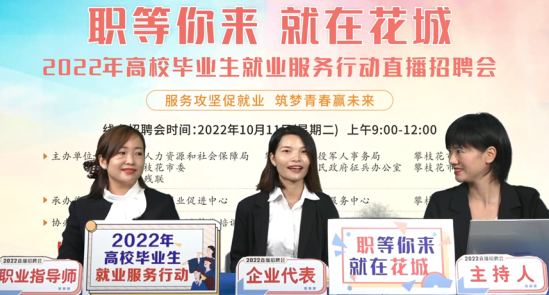 ——直播帶崗,開展線上招聘。為拓寬企業和高校畢業生線上對接渠道,攀枝花公共招聘網開展直播招聘,選取企業10家,提供崗位200余個。企業與求職者進行線上互動,有力增強招聘實效。招聘會前,市就業中心以短信形式向2414名離校未就業高校畢業生推送直播招聘等相關信息。此次直播招聘觀看65566人次,簡歷投遞277份。