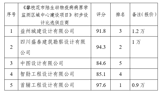 攀枝花市陸生動物疫病病原學監測區域中心建設項目初步設計比選評審結果公示
