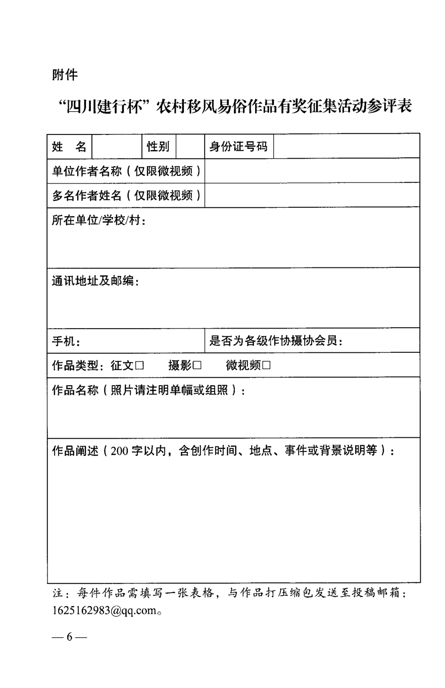 附件:“四川建行杯”農村移風易俗作品有獎征集活動參評表