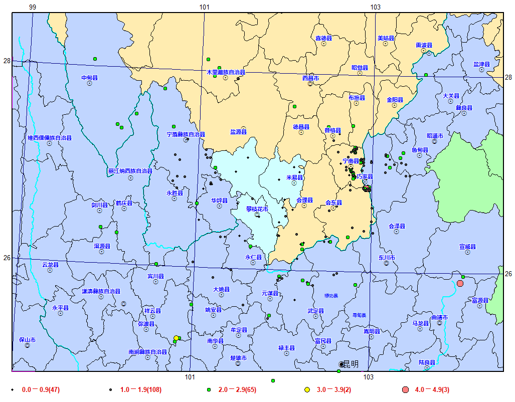 2023年1-9月攀枝花市及周邊地區震中分布圖(多臺定位)