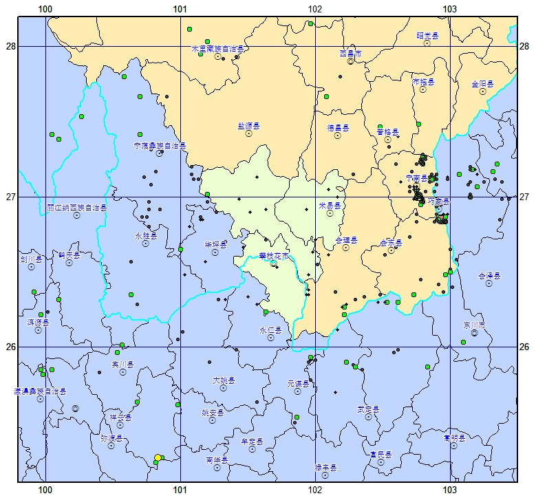 2023年度攀枝花市及周邊地區震中分布圖(多臺定位)