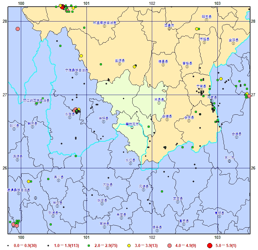 2024年1-6月攀枝花市及周邊地區震中分布圖(多臺定位)