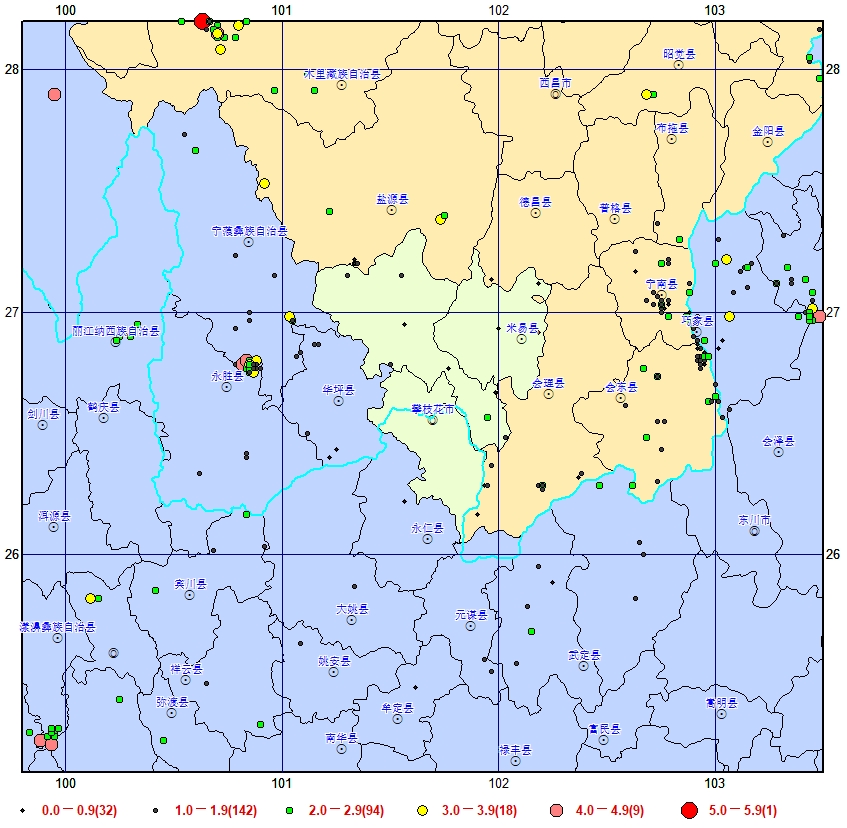 2024年1-7月攀枝花市及周邊地區(qū)震中分布圖(多臺定位)