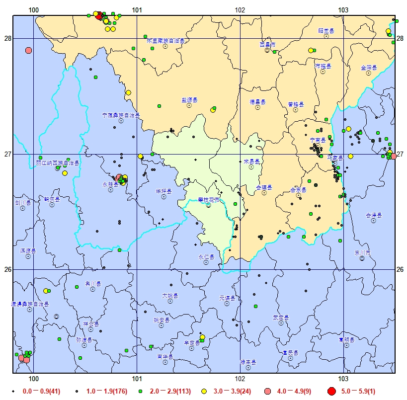 2024年1-9月攀枝花市及周邊地區震中分布圖(多臺定位)