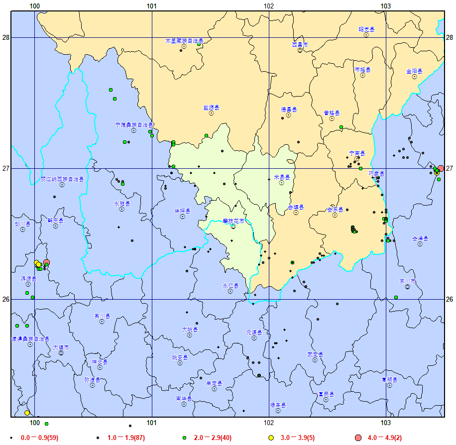 2025年1-4月攀枝花市及周邊地區震中分布圖(多臺定位)