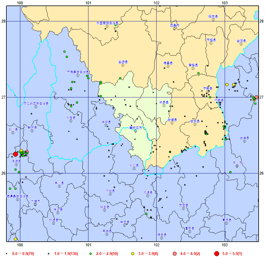 2025年1-6月攀枝花市及周邊地區震中分布圖(多臺定位)