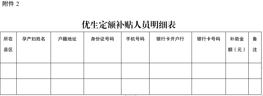 第三條 補貼標準。為符合條件孕產婦給予一次性1000元的優生補貼。