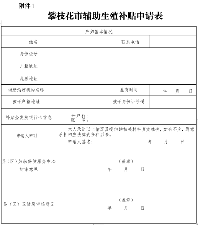附件:1.攀枝花市輔助生殖補(bǔ)貼申請表