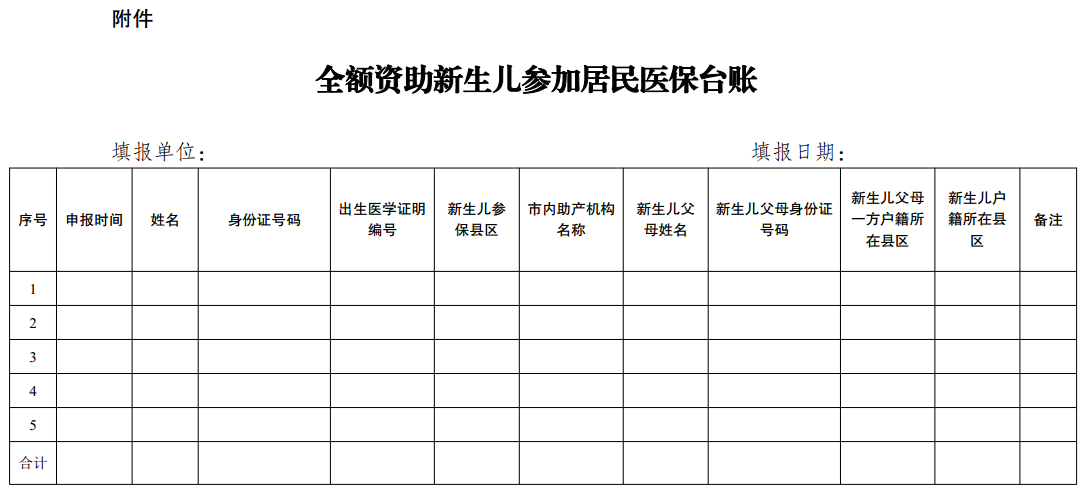 附件:全額資助新生兒參加居民醫(yī)保臺賬