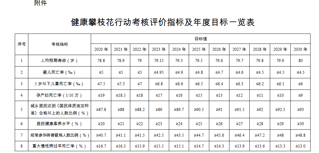 附件:健康攀枝花行動考核評價指標及年度目標一覽表