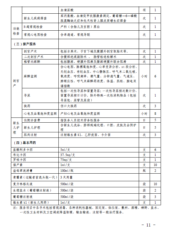 第三條 服務(wù)項目。免費服務(wù)項目包括住院分娩基本護理、常規(guī)檢查、助產(chǎn)服務(wù)、基本用藥(見附件)以及在產(chǎn)科、ICU的合并癥、并發(fā)癥處理所需的合理治療、檢查和用藥。非合并癥、并發(fā)癥的原有基礎(chǔ)疾病及后續(xù)康復(fù)服務(wù)不納入服務(wù)項目。孕產(chǎn)婦住院分娩費用在醫(yī)保、商業(yè)保險等報銷后剩余部分由項目給予補助。
