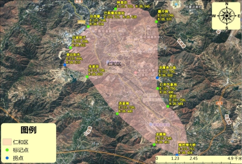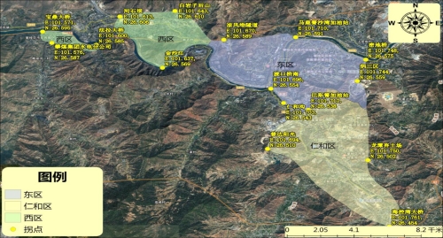 五十四至仁和片區:北部緊鄰東區,南至海控灣大橋(E:101.761,N:26.454),東至下龍潭棄土場(E:101.750,N:26.502),西至普達陽光(E:101.694,N:26.510)。