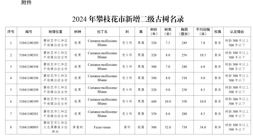 根據《四川省古樹名木保護條例》有關規定,2024年攀枝花市新認定二級古樹8株,現予公布。