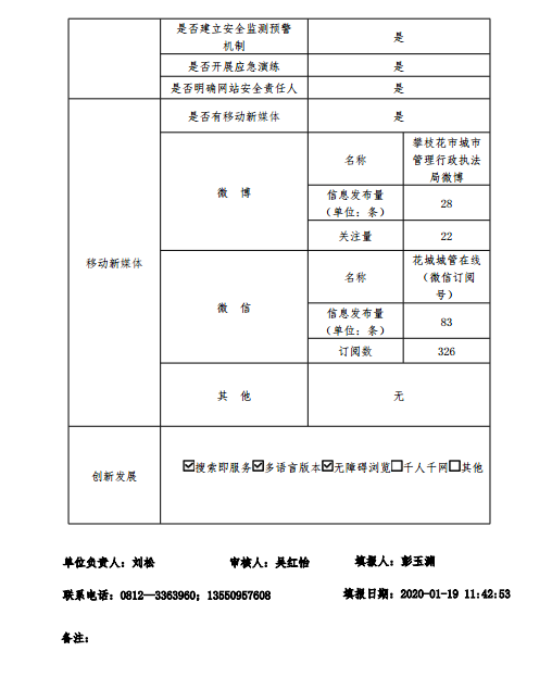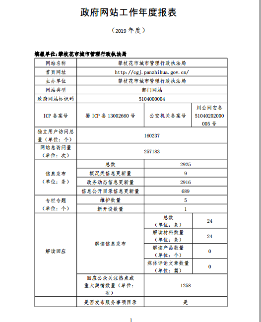 攀枝花市城市管理行政執法局2019年政府網站工作年度報表