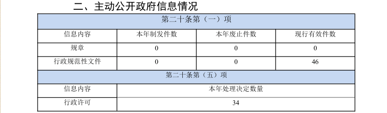 (一)主動公開情況。一是信息公開基本情況。我局認真開展政府信息公開工作。2022年通過局部門網站累計公開信息2615條,全年部門網站訪問量811448次。2022年我局主辦人大代表建議1件、政協委員提案7件,辦復率100%,滿意率100%,全部按時辦結并予以公開。微信公眾號公開信息499條,關注用戶2748人。微博公開信息177條,關注用戶27人。二是重點領域信息公開情況。我局全年重點領域信息公開77條。
