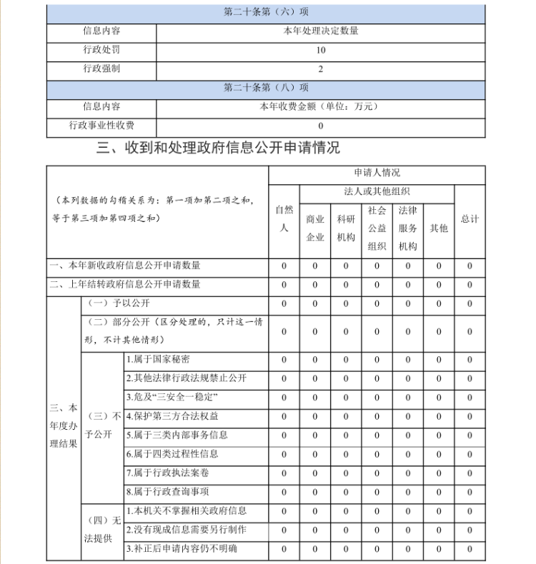 (二)依申請公開情況。2022年度,我局受理依申請公開0件,收到行政復議申請0件。