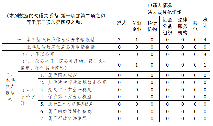市人力資源社會保障局著力提升依申請公開辦理質效,嚴格按照相關法律法規,高效、規范地處理公民、法人和其他組織的政府信息公開申請,答復內容清晰,時間及時,法律法規引用準確。全年共受理依申請公開事項4件,予以公開3件,部分公開1件。