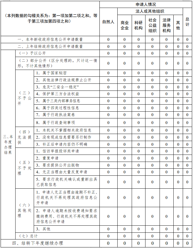 全面貫徹落實《政府信息公開條例》《國務院辦公廳轉發司法部關于審理政府信息公開行政復議案件若干問題指導意見的通知》等規定,進一步規范依申請公開的受理、登記、辦理、督辦等流程,著力滿足群眾個性化合理信息需求。2024年度未收到政府信息公開有關申請,未發生行政復議和行政訴訟。