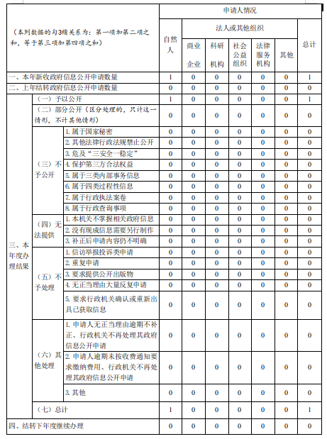 (二)依申請公開政府信息辦理情況。及時更新發布《依申請公開指南》,切實保障群眾的知情權與監督權。2023年,接收申請公開政府信息事項1件,已及時為公民提供有關數據信息,按時辦理完結。