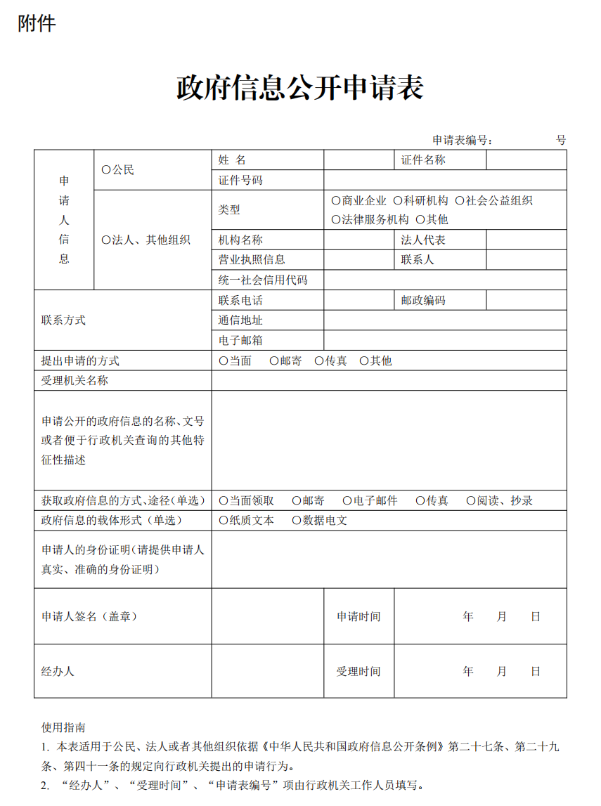 附件:政府信息公開申請表