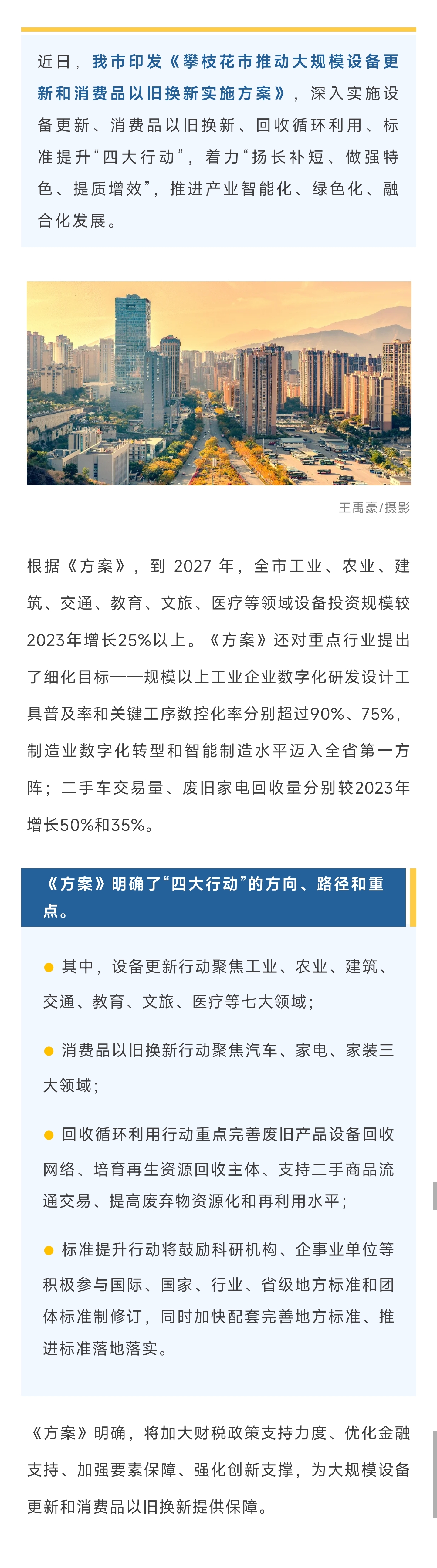 文字解讀 | 《攀枝花市推動大規(guī)模設(shè)備更新和消費(fèi)品以舊換新實(shí)施方案》