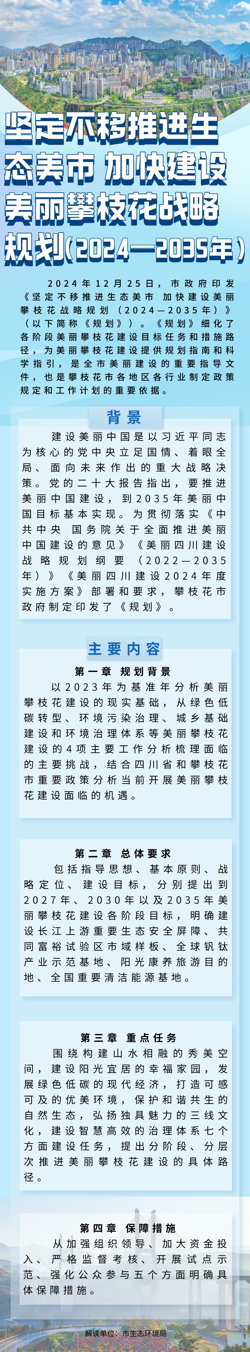 文字解讀丨《堅(jiān)定不移推進(jìn)生態(tài)美市 加快建設(shè)美麗攀枝花戰(zhàn)略規(guī)劃(2024—2035年)》