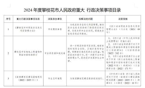 關于公布《2024年度攀枝花市人民政府重大行政決策事項目錄》的通知