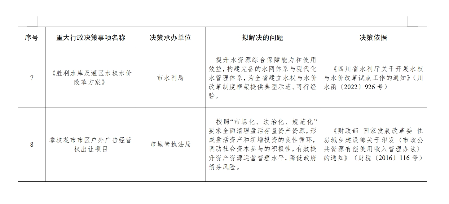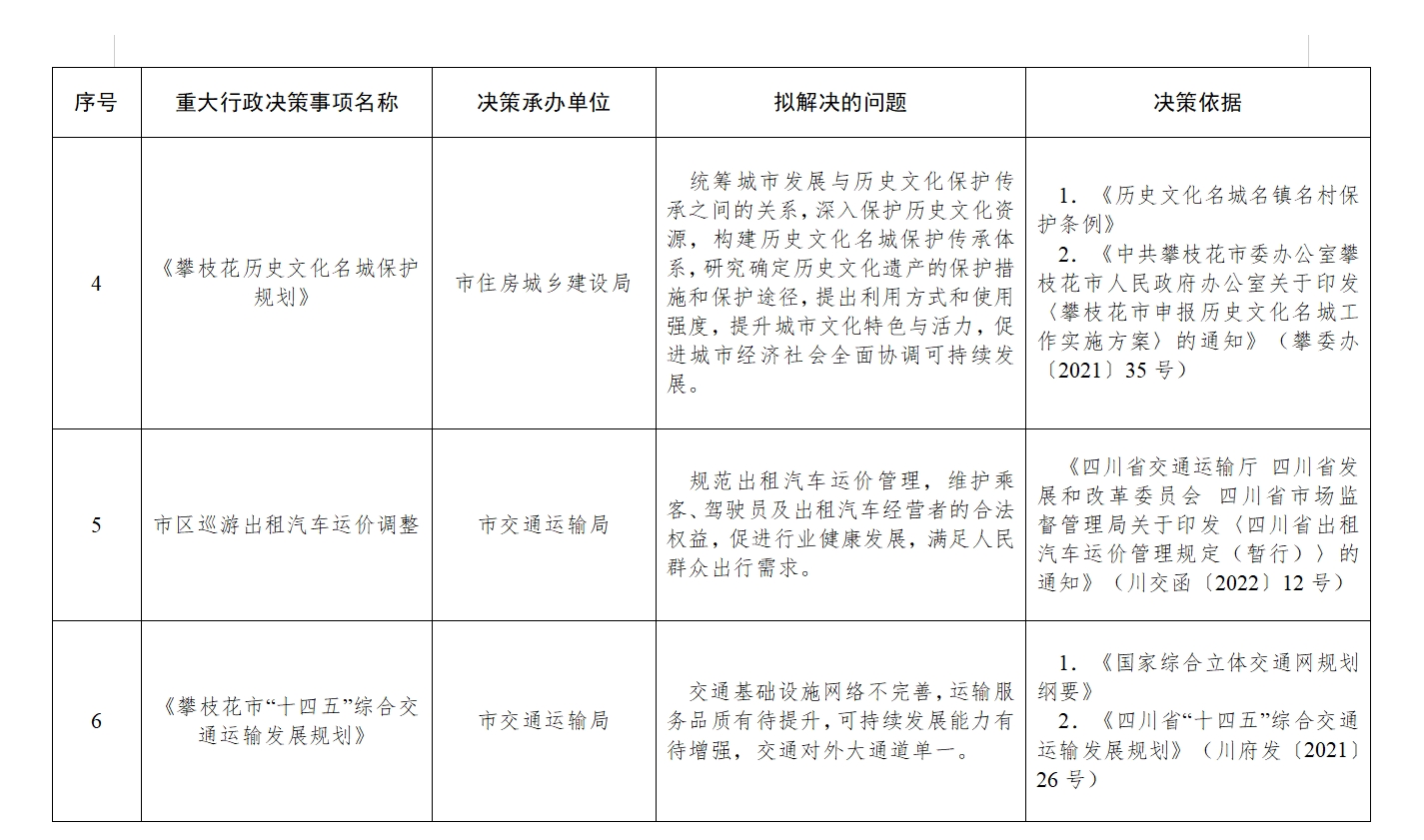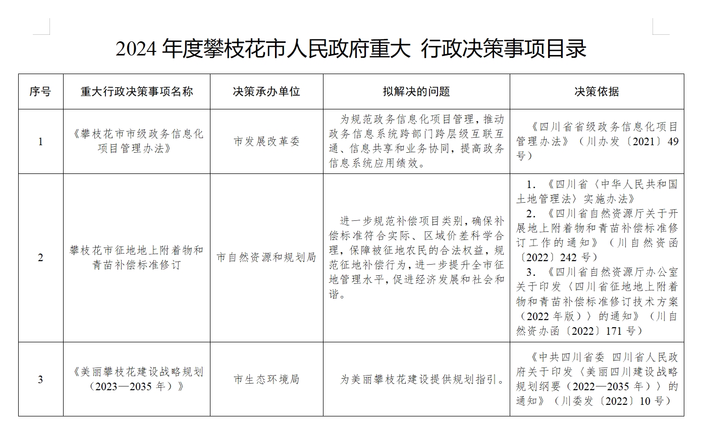 攀枝花市人民政府辦公室關于公布《2024年度攀枝花市人民政府重大行政決策事項目錄》的通知