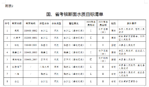附表2 國、省考核斷面水質目標清單 ...................................…...