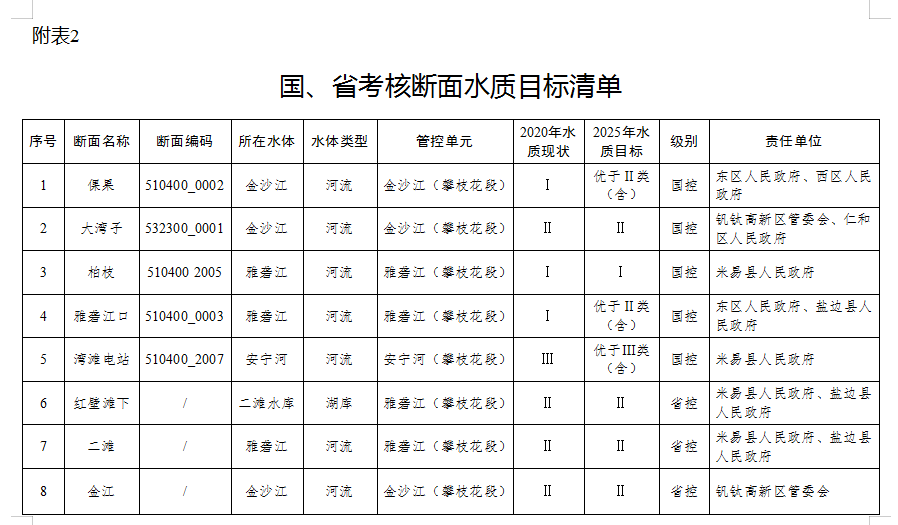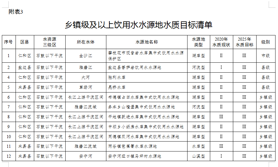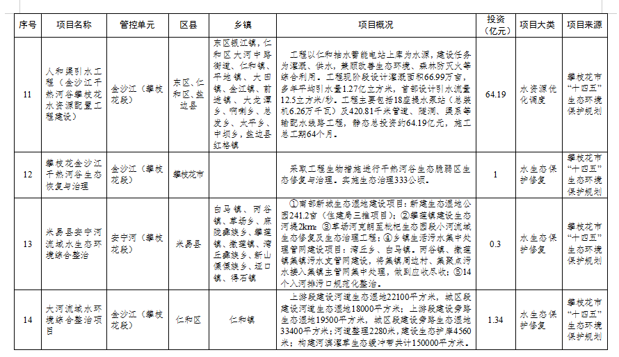 攀枝花市人民政府辦公室關于印發《攀枝花市“十四五”重點流域水生態環境保護規劃》的通知