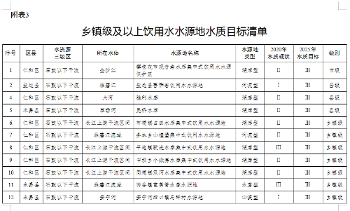 附表3 鄉鎮級及以上飲用水水源地水質目標清單 ...........……...
