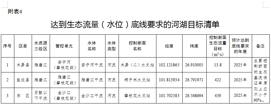 附表4 達到生態流量(水位)底線要求的河湖目標清單 ………