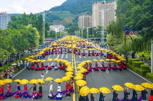 “朵洛荷”是彝族的傳統(tǒng)舞蹈,承載著千年歷史與文化。7月20日上演的火把節(jié)“朵洛荷”表演,被米易賦予新意,大膽融入創(chuàng)新元素,深入挖掘彝族文化內(nèi)涵,結(jié)合現(xiàn)代審美與表演形式,精心編排設(shè)計(jì),1300名“阿惹妞”身著七彩百褶裙,手持黃油紙傘緩步穿行,傘面流轉(zhuǎn)的光影與迷昜湖的波光交疊,宛如移動的索瑪花海,為這座小城增添了幾分神秘與浪漫。沿途的市民和游客紛紛駐足觀賞,拿出手機(jī)記錄這難得一見的美景,整個(gè)米易沉浸在一片歡樂與祥和的氛圍之中。